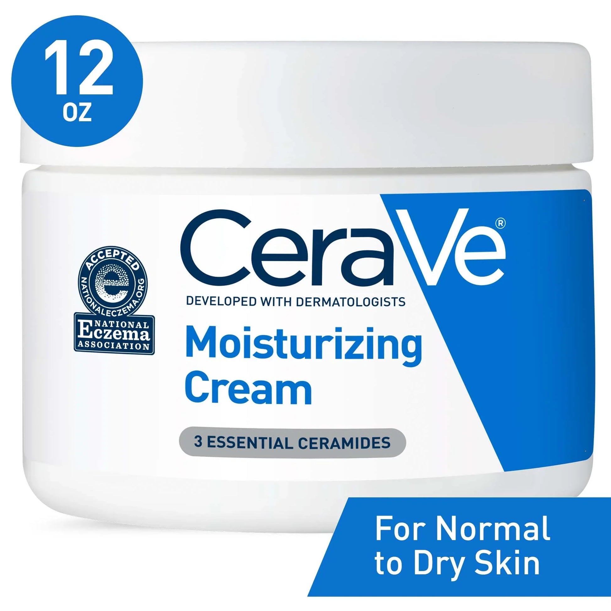 CeraVe Moisturizing Cream is a rich, non-greasy, fast-absorbing moisturizer for normal to dry skin on the face and body. Formulated with three essential ceramides, it works to lock in skin's moisture and help maintain your skin’s protective barrier. Our moisturizing cream also features hyaluronic acid, petrolatum, and MVE Delivery Technology which works by continually releasing moisturizing ingredients for long-lasting hydration. Developed with dermatologists, this barrier-restoring cream is gentle on skin, fragrance-free, and accepted by the National Eczema Association.